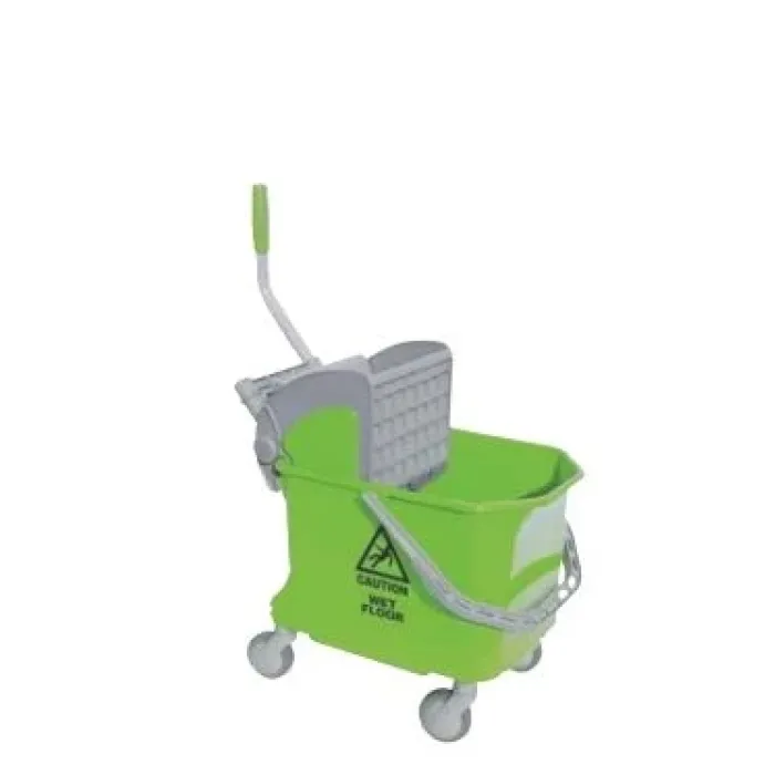 С четирите колела, специално проектирани да не оставят петна, тази количка ви позволява да достигнете всяка област с лекота. Подвижна кофа с преса за изцеждане на мопове 18л, в комплект с дръжка за носене. Изработена от закалена пластмаса. Подходяща също за хотели, големи помещения, офиси, клиники и други.