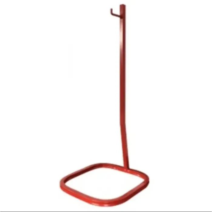 Тръбна стойка/закачалка за един пожарогасител. Тръбните стойки за един пожарогасител са от тръби с подходяща дебелина на стената, за да бъдат устойчиви и да издържат на теглото на пожарогасителя. В горната част на стойката е заварена специална кука, на която се закача пожарогасителя. В долната част на стойката са поставени пластмасови елементи, които служат за предпазване на пода от надраскване. Според Наредба №8121з-647 на МВР , ЗА ПРАВИЛАТА И НОРМИТЕ ЗА ПОЖАРНА БЕЗОПАСНОСТ ПРИ ЕКСПЛОАТАЦИЯ НА ОБЕКТИТЕ, чл.23 ал.2. пожарогасителите трябва да бъдат поставени на леснодостъпни и с добра видимост места и в съответствие с тяхното местоположение върху схемите за евакуация. Пожарогасители с обща маса 18 кг. или по-малка се монтират така, че горната част на пожарогасителя да е на разстояние не повече от 1,5 м. над пода; пожарогасители с обща маса, по-голяма от 18 кг. (с изключение на возимите видове), се монтират така, че горната част на пожарогасителя да е на разстояние не повече от 1,0 м над пода; разстоянието между дъното на пожарогасителите, монтирани на поставки или стойки от пода е не по-малко от 3 см. След като закачите пожарогасителя на единична тръбна стойка описаните по-горе изисквания ще бъдат изпълнени.
