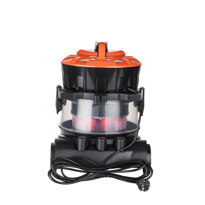 Прахосмукачката разполага с многоциклонна филтрираща система. Комплектът включва четири почистващи приставки. Индустриалните прахосмукачки се използват във фирми, производствени предприятия, фабрики, различни видове строителни обекти и дърводелски работилници. Индустриалната прахосмукачка без торба. Тази прахосмукачка отговаря на стандартите на ЕС и е високоефективна. Високопроизводителният ѝ електрически мотор позволява без усилие да се справя с всякакви видове замърсявания, а колелцата в основата улесняват преместването на устройството по време на работа.