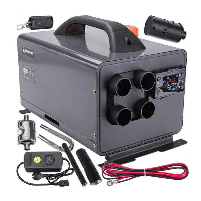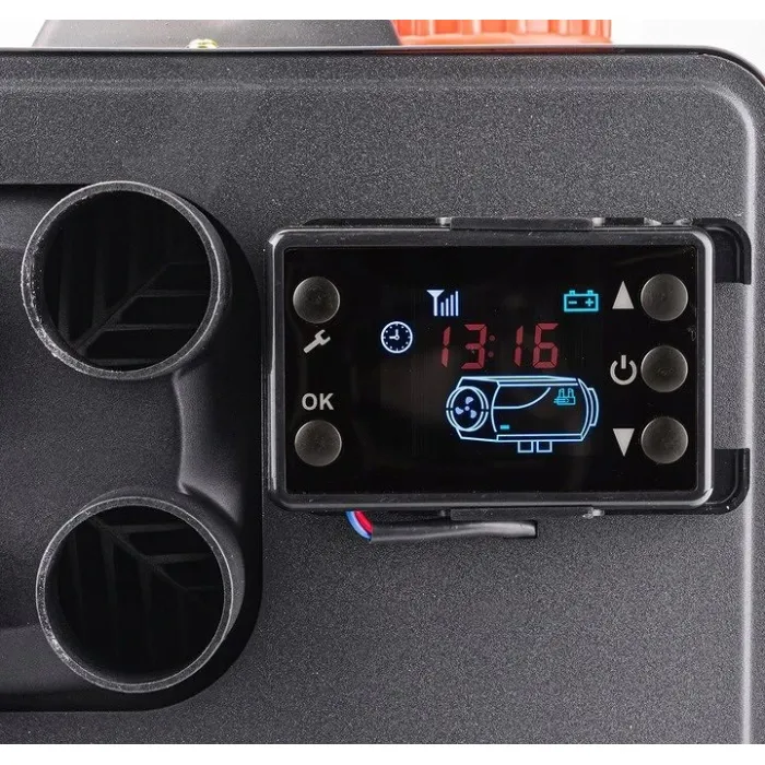 Устройството се захранва от 12V DC, което го прави съвместимо с широка гама от превозни средства и захранващи системи. Оборудван с лесен за употреба аналогов панел, той позволява прецизен контрол на функции като настройване на часовник, мощност на отопление, таймер и температура на околната среда.
