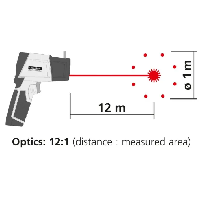 Устройството определя температурата на повърхността, температурата на околната среда, относителната влажност и температурата на точката на оросяване. Измерването на температурата е възможно и на труднодостъпни места и в опасни зони. Различни измерени стойности се показват едновременно на практичния многофункционален дисплей. Този инфрачервен термометър е подходящ за предотвратяване на повреди по строителната материя чрез локализиране на топлинни мостове и конденз. Корпусът е изработен предимно от рециклиран материал, което прави ценен принос за устойчивостта.