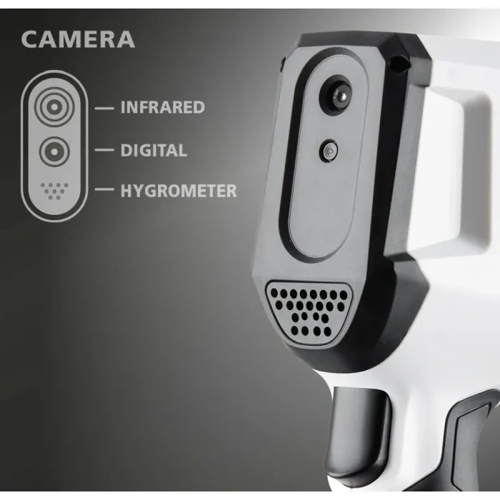 Сливането на термокамерата, цифровата камера и хидрометъра формира функцията за визуално определяне на точката на оросяване. Тя генерира надеждни термоизображения с прецизна маркировка на повърхности, които са достигнали или паднали под точката на оросяване, идеална за инспекции на критични вътрешни пространства. В допълнение към инспекциите на сгради, многото възможни приложения включват работа по електрически системи, машини, отоплителни и вентилационни системи, както и локализиране на източници на топлина или студени точки. Тази иновативна термокамера определя температурите на повърхностите, относителната влажност, околната температура и температурата на точката на оросяване. Тя надеждно визуализира температурните криви, топлинните мостове и кондензацията.