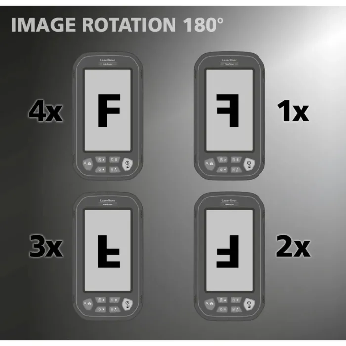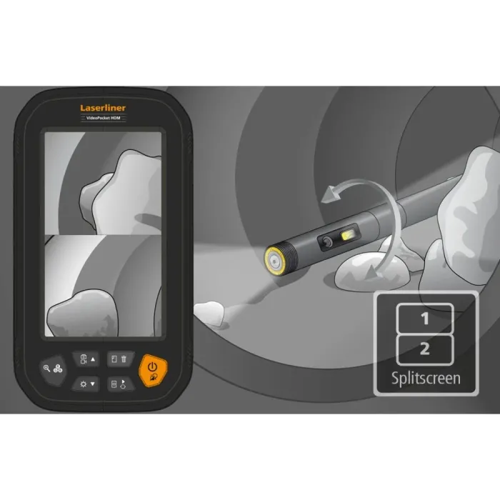 Предната и страничната камера позволяват гъвкав изглед на зоната за инспекция на големия цветен дисплей, по избор поотделно или едновременно в ясен изглед на разделен екран. Детайлите могат да бъдат ясно заснети с помощта на функцията за мащабиране. Функцията за сравнение на изображения позволява на потребителя да види разликите между изображението на живо и запазено референтно изображение. Тази компактна система за видеоинспекция с висока резолюция позволява детайлна визуална проверка на труднодостъпни места, като тръбопроводи, окачени тавани и превозни средства. Седем мощни светодиода на водоустойчивата камера, регулируеми в десет настройки, осигуряват ефективно осветление по време на употреба.