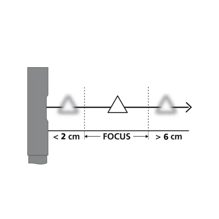 Дълбочина на фокуса (DOF) Отпред: 3 … 8 cm / Отзад: 2 … 6 cm