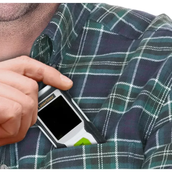 Функцията за непрекъснато измерване позволява на LC дисплея да показва максимални, минимални и текущи стойности. Лесно четливият дисплей, избираемата референтна точка на корпуса и компактният дизайн правят това устройство изключително лесно за употреба. Отличната защита се осигурява от гумирания корпус, който е изработен предимно от рециклирана пластмаса, което допринася значително за устойчивостта. След кратки периоди на неактивност, първо лазерът, а след това и устройството, се изключват, за да се пести енергия. Този лазерен далекомер осигурява прецизно определяне на дължини, площи и обеми и е идеален за измерване на размери на помещения и изчисляване на количества материали. Технологията със зелен лазер гарантира отлична видимост.