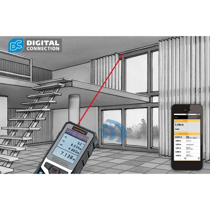 Функцията за непрекъснато измерване улеснява работата в ситуации, където са необходими непрекъснати измервания на разстояние, например когато целевият обект се движи по време на измерване. Цифровият нивелир позволява далекомерът да бъде прецизно подравнен хоризонтално и перфектно настроен за измерването. Измерените данни могат да бъдат прехвърлени в дневника на измерените стойности, използвайки цифровия интерфейс за връзка. Той може да съхранява максимум 50 записа за оптимално записване на резултатите от проекта. Този универсален лазерен далекомер има дълъг обхват на измерване от 100 метра и е идеален за бързо измерване, събиране и изваждане на дължини, площи и обеми. Функцията за ъгъл позволява индиректно определяне на височини и разстояния – идеално за измерване на труднодостъпни места.