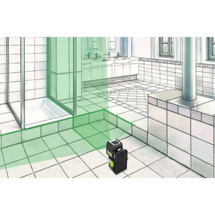 Той предлага и функция за ръчно наклоняване за лесно създаване на наклони и резба 1/4” за монтаж на статив или предоставената затягаща скоба. Това позволява оптимално използване на лазера при работа с вътрешно обзавеждане и позволява бързо регулиране на позицията и височината. Може да се фиксира на място, без да се повредят повърхностите. Този лазер с кръстосани линии проектира силно видим зелен лазерен кръст за прецизно хоризонтално и вертикално подравняване на обекти. Лазерът може да се използва и за външни приложения и работа по подравняване на дълги разстояния с вградения режим на ръчен приемник. Корпусът на устройството е изработен от голяма част от рециклирана пластмаса и има ценен принос за устойчивостта.