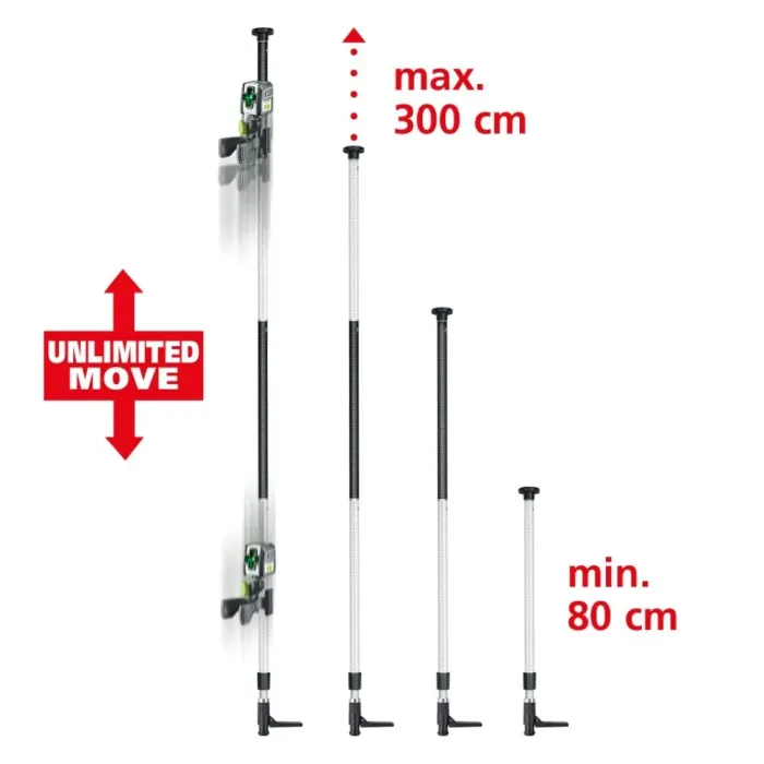 Телескопичният прът TelePod 300 см позиционира прецизно лазера за помещения с височина до 3 метра