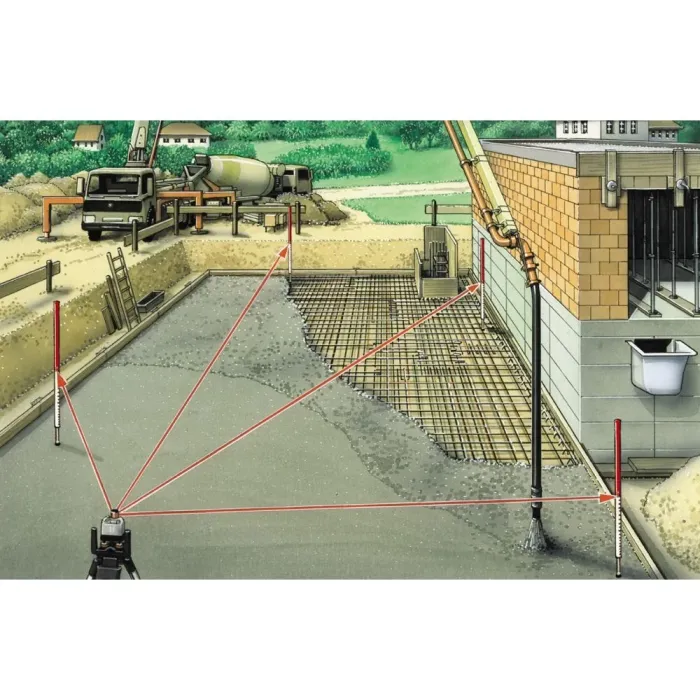В режим на точково измерване позицията може лесно да се определи дистанционно. Оптималната видимост може да се настрои с помощта на регулируемата скорост на въртене. С помощта на режима на сканиране може да се зададе светлосилна линия в различни ширини и позиции. Когато се използва в режим на ръчен приемник, постоянно високата скорост осигурява перфектно качество на приемане. Този ръчен ротационен лазер с приемник, стойка и нивелираща лата позволява прецизно хоризонтално подравняване и фиксиране. Устройството може да бъде настроено на режим на точково измерване, сканиране, ротационен режим и режим на ръчен приемник. Комбинацията от гъвкава нивелираща латка и прикрепяемия ръчен приемник е идеална за измервания на нивото на земята и определяне на разлики във височината, без да е необходимо да се извършват изчисления. Леката и здрава стойка гарантира, че лазерът е сигурно разположен.