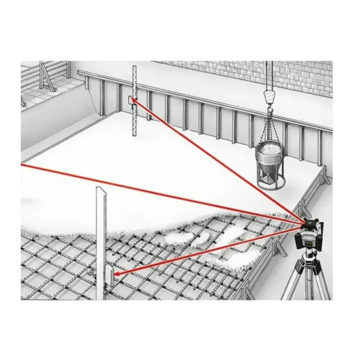 Функциите могат лесно да се управляват от всички страни с помощта на дистанционното управление до максимално разстояние от 40 метра. ADS накланянето на устройството го изключва автоматично в случай на външни влияния. Този напълно автоматичен ротационен лазер е идеален за прецизно подравняване на хоризонтали, вертикали и наклони. С радиус от 350 метра, обхватът на лазерно приемане е изключително голям. Този здрав статив с манивела с адаптер с резба 5/8”, стабилни стоманени крачета и стоманени вериги има изключително дълъг ход на манивелата (70 см), който може да се регулира и заключва без хлабина. Комплектът е допълнен от нивелираща лапа Flexi Plus за определяне на височини на пода.