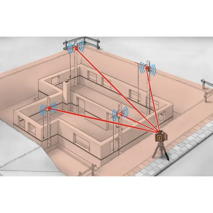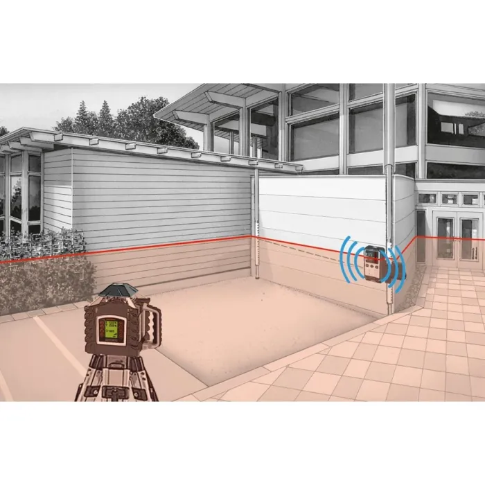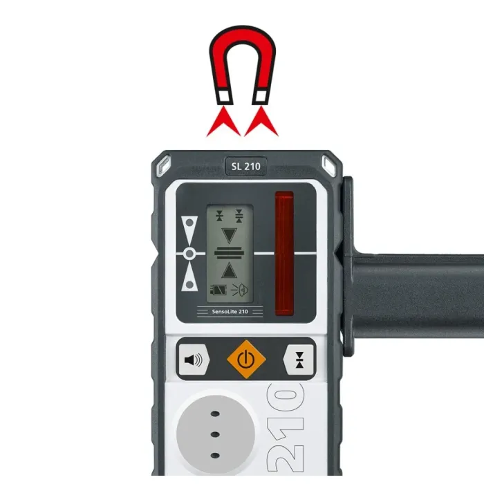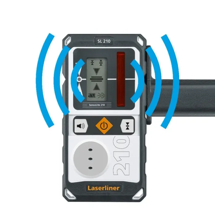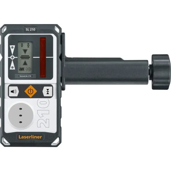 Универсалното крепление позволява лесното закрепване на устройството към нивелирни лати. Вграденият магнит за главата позволява закрепването на устройството към метални повърхности. Този лазерен приемник е подходящ за червени ротационни лазери и осигурява пестещо време, близко и дългосрочно нивелиране в обхват от 200 метра. Лесният за четене LC дисплей отпред и ясните акустични сигнали предоставят на потребителя информация за височината на лазерния лъч.