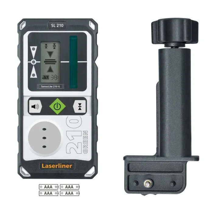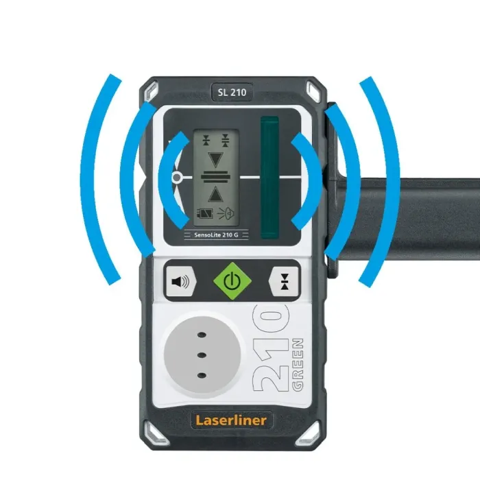 Лесният за четене LC дисплей отпред и ясните акустични сигнали предоставят на потребителя информация за височината на лазерния лъч. Универсалното крепление позволява лесното закрепване на устройството към нивелирни лати. Вграденият магнит за главата позволява закрепването на устройството към метални повърхности. Този лазерен приемник е подходящ за зелени ротационни лазери и осигурява бързо, близко и дългосрочно нивелиране в обхват от 200 метра.