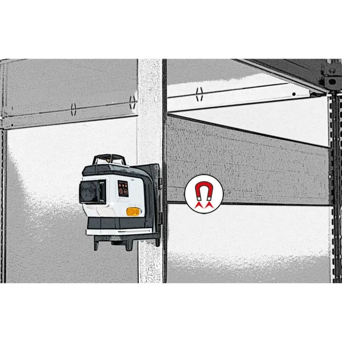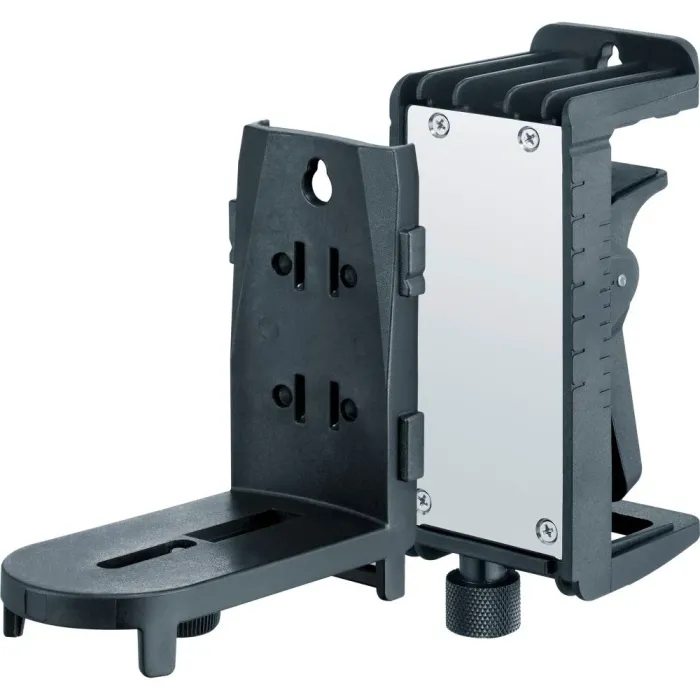 Хоризонтален или вертикален монтаж върху профили за гипсокартон е възможен посредством затегателни скоби. Чрез регулиране на фиксиращия винт може да се регулира ширината на отвора на скобата. Тази магнитна скоба и стенна стойка са подходящи за всички лазерни измервателни устройства с резба 1/4". Има отвори за директен монтаж на стената. Силните самозалепващи магнити на гърба позволяват закрепване към метални повърхности.