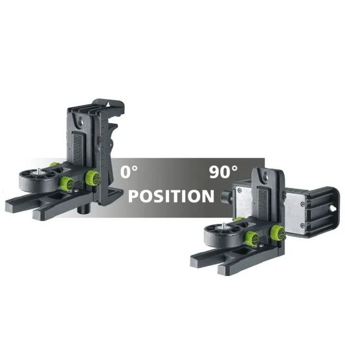 Промяната на позицията на двата магнитни задържащи елемента позволява устройството да бъде закрепено към хоризонтални и вертикални обекти, като например тръбопроводи. Изключително удобен механизъм за регулиране с нониус, който гарантира, че лазерните линии са прецизно подравнени с ръбовете. Вградената резба 5/8” е идеална за употреба със строителни стативи. Всички лазери с резба 1/4” могат да бъдат позиционирани с тази скоба и стенна скоба или здраво закрепени към метални повърхности или таванни профили. Скобата може да се адаптира към много различни дълбочини на профила с помощта на регулиращия винт и осигурява прецизно регулиране на височината.