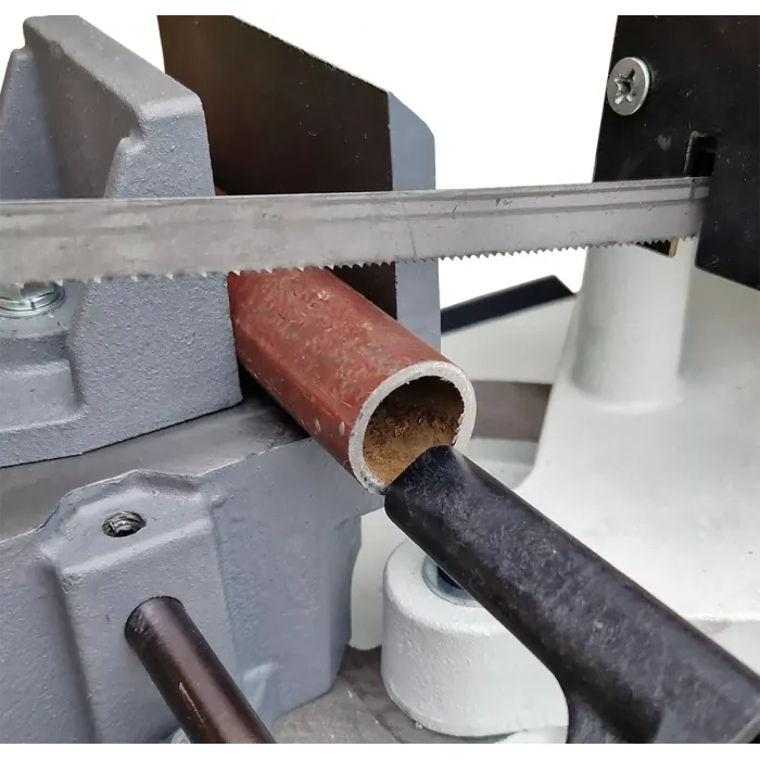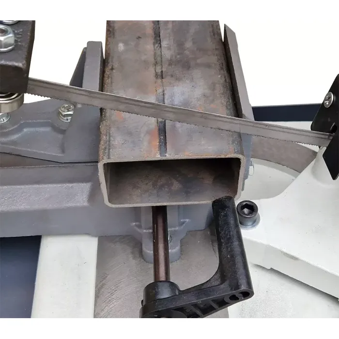 Дизайнът на рамото позволява бърза трансформация от хоризонтално рамо към вертикален трион. Това решение работи добре не само за рязане на метал, но може да се използва и като вертикален прободен трион за дърводелство, рязане на алуминий, дърво и подобни материали.