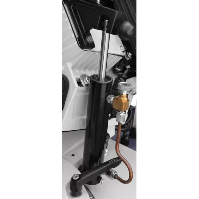 Комплект лагери насочва лентата за право рязане. Стандартното оборудване включва автоматичен краен изключвател и превключвател ON/OFF в съответствие с IP 54. Въртяща се рамка на триона за двойно скосяване от -45° до +60° . Хидравличен цилиндър (стандартно оборудване) за безстепенно спускане на рамото.