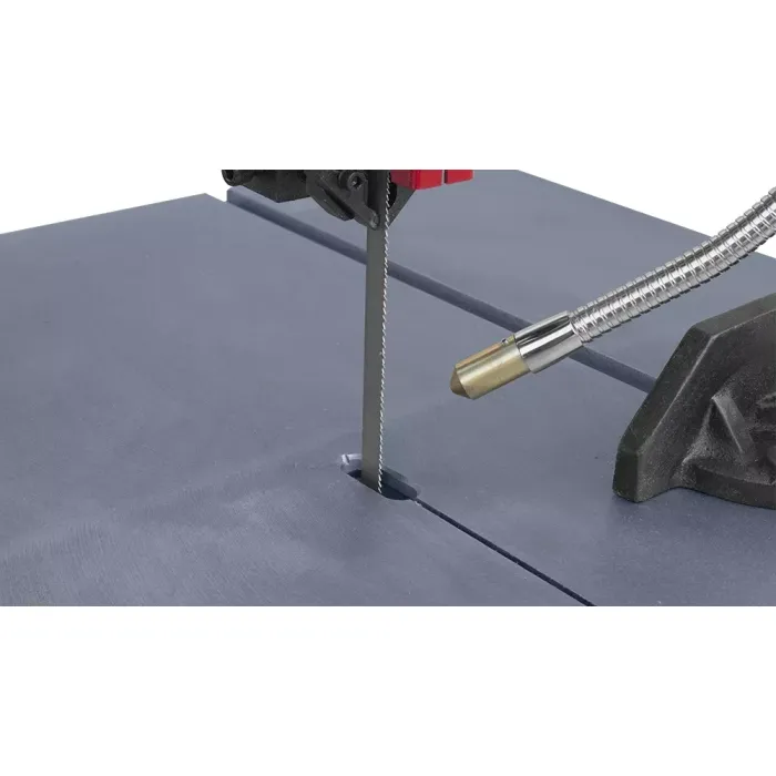 Лентовият трион VS-500 е стандартно оборудван с охлаждаща система, която предотвратява прегряването на инструментите и материалите по време на рязане. Това води до по-точни разрези и по-дълъг живот на инструмента.
