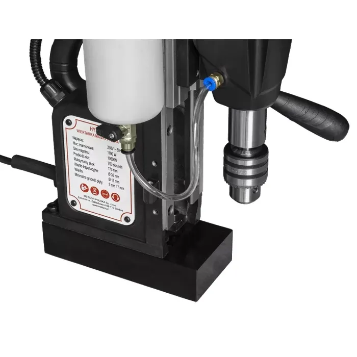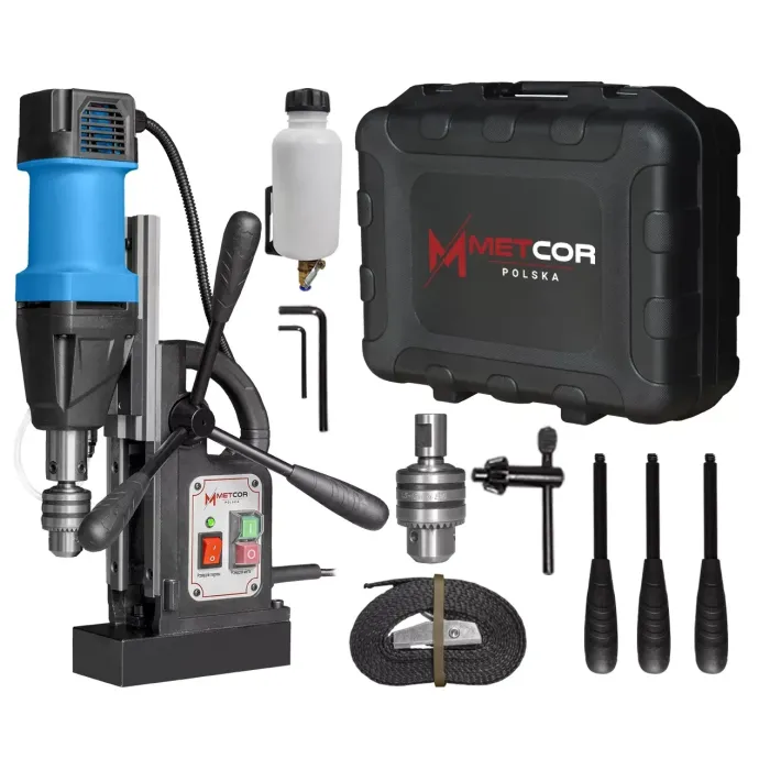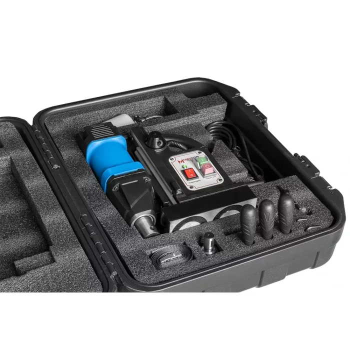 Ефективният 1100W мотор осигурява комфорт на употреба и издръжливост на устройството. Магнитната бормашина е издръжлива, многофункционална бормашина с магнит, която работи перфектно при пробиване. Високомощният електромагнит с двойна намотка позволява безопасна работа във всяка позиция, дори на височина. Пластмасовият куфар гарантира лесно и безопасно транспортиране и улеснява съхранението на инструмента, като е устойчив на всякакви механични повреди.