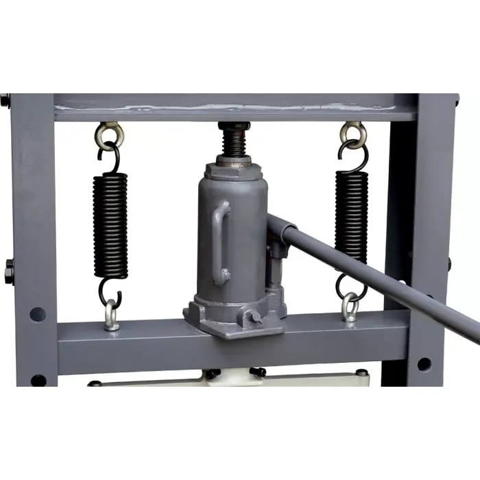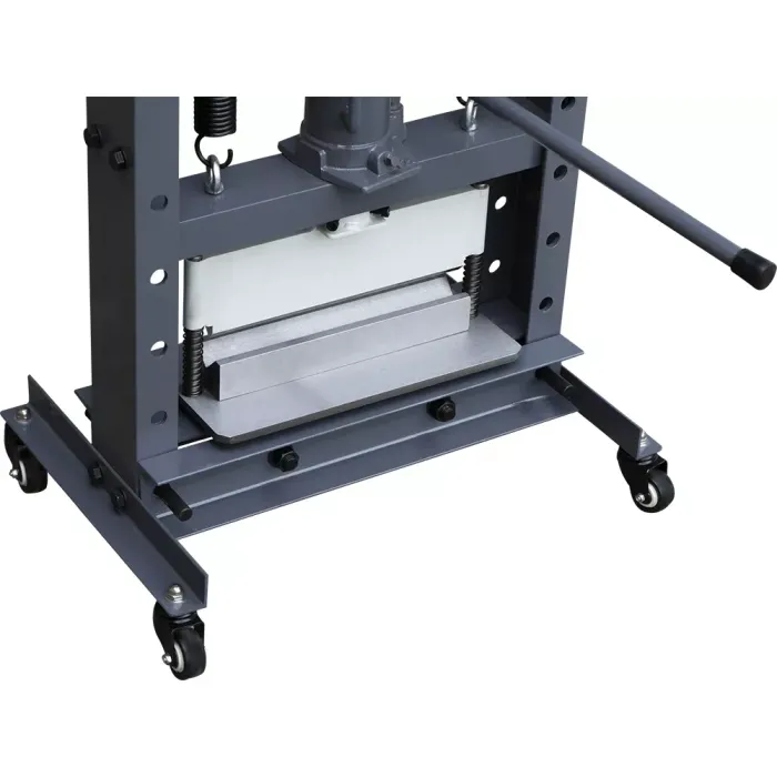 12-тонен хидравличен цилиндър, комбиниран с ръчна помпа, осигурява висока производителност и лекота на използване. Освен това, както цилиндърът, така и помпата са лесно свалими, което позволява използването им за други задачи по пресоване, увеличавайки функционалността и универсалността на цялата машина.