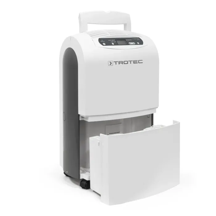 Професионален влагоабсорбатор, който се доближава до производителността на най-добрите модели в своя клас. С TTK 100 E разполагате с модерен влагоабсорбатор, който съчетава успешен дизайн с усъвършенствано управление. В сравнение с влагоабсорбаторите с аналогово управление за безмерна предварителна настройка от минимална до максимална работа, TTK 100 E ви позволява да въведете желаната стойност на влажността директно чрез цифровия дисплей. Вграден хигростат напълно автоматично изпълнява тази цел и независимо регулира производителността на компресора и двустепенния вентилатор.