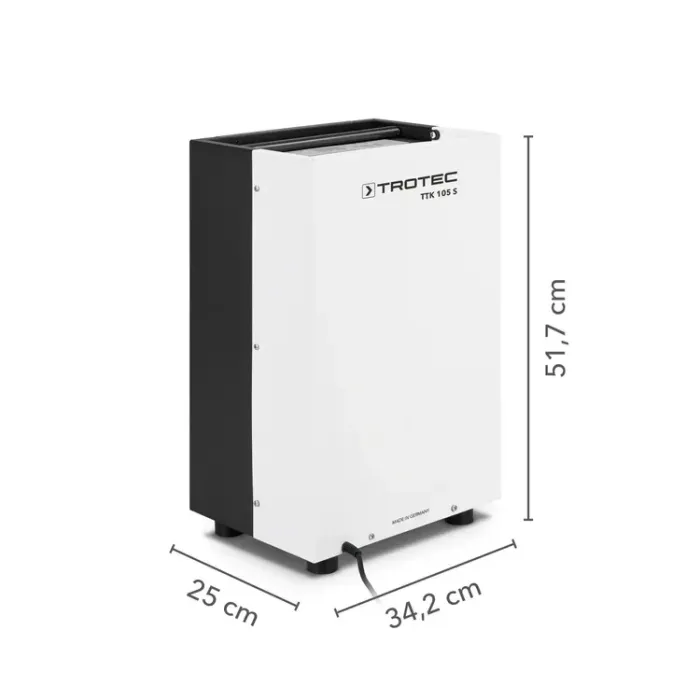 Влагоабсорбаторът TTK 105 S съчетава най-добрите характеристики на модерен влагоабсорбатор в алуминиев корпус, едновременно здрав и изключително лек, с усъвършенствани функции, а благодарение на изразения си резерв на мощност може да впечатли и при поддържане на сухота в по-големи помещения.