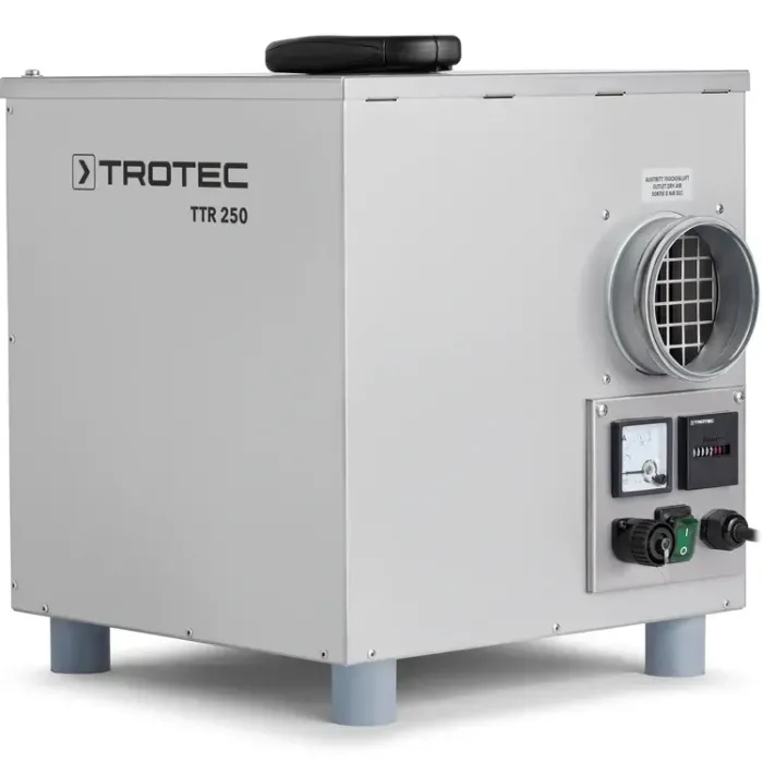 Следователно, TTR 250 е идеално подходящ за регулиране на влажността на въздуха в производствени и складови помещения или за защита от корозия и конденз във всички чувствителни към влажност среди, където се прилагат специални хигиенни стандарти или в условия, които са особено материалоемки.