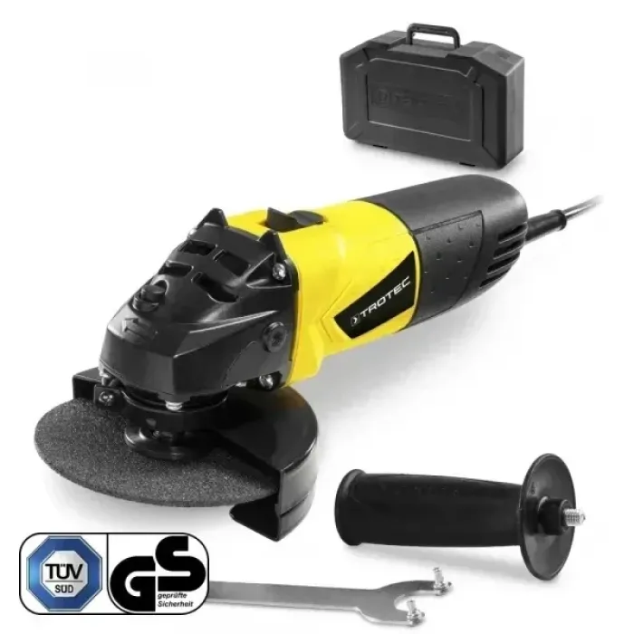 Ъглошлайфът е снабден със защита, която предотвратява незабавното стартиране на ъглошлайфа след пускане на електрозахранването и пуснат превключвател. Не на последно място, регулируемият капак на електрическият ъглошлайф Trotec PAGS 10-115 осигурява надеждна защита срещу прах или летящи искри по време на шлайфане или рязане. Ъглошлайфа е конструиран за непрекъсната употреба без умора. Дълготрайният му редуктор, изработен от лят алуминий, гарантира висока стабилност и постоянна мощност от 12 000 оборота в минута дори при натоварване. Доставената допълнителна ръкохватка може да се монтира от двете страни на ъглошлайфа, което позволява удобство за работа с лява или дясна ръка.