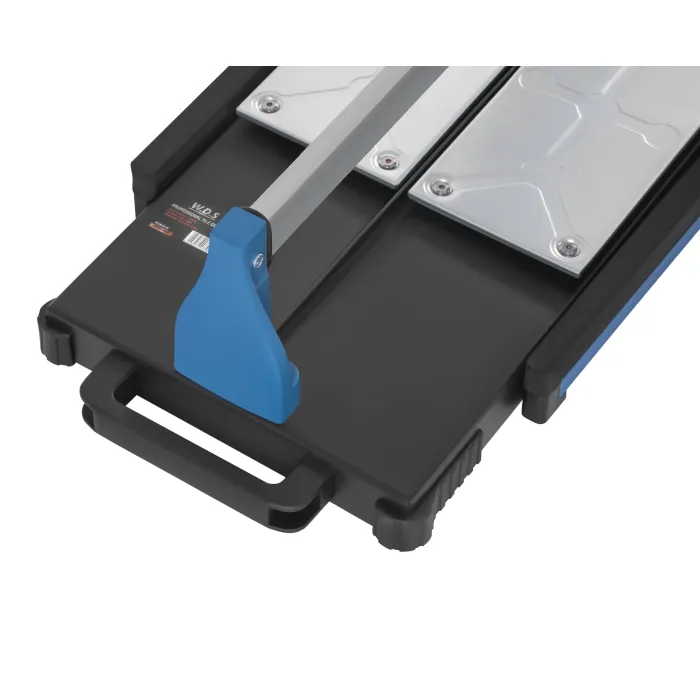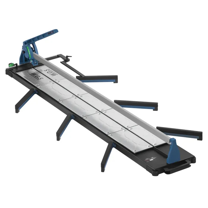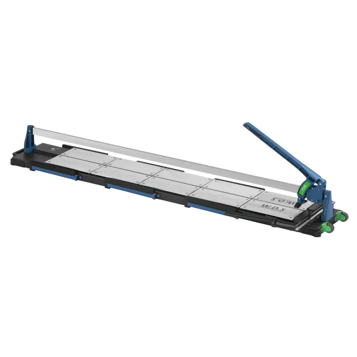 Благодарение на леката, но издръжлива конструкция от алуминий и пластмаса, резачката гарантира стабилност и точност на рязане, дори върху големи керамични плочки, каменинови изделия или изкуствен камък. Вградените транспортни колела и ергономичната дръжка улесняват преместването на устройството, а комплект ключове позволява бързо сглобяване и настройка. Професионална машина за рязане на плочки с дължина на рязане 1650 мм, предназначена за потребители, които изискват прецизност, издръжливост и комфорт. Тя е идеална както за професионални работилници, така и за големи ремонтни и строителни проекти.