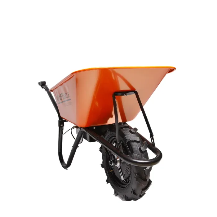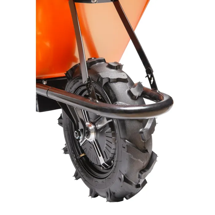 Благодарение на подходящата технология на производство и дизайн, моделът се откроява на пазара. Регулируемата скорост на количката я прави идеален работен инструмент за всеки. Максималната скорост е 7 км/ч. Задвижващата система е перфектно допълнена от висококачествена батерия, която осигурява до 8 часа работа с едно зареждане, и гуми за офроуд. Огромно транспортно тегло от 150 кг / 80 л. Металната купа позволява транспортиране на насипни, полутечни и обемисти материали. Тази самоходна количка с батерии е идеална за леко строителство, градинарство и навсякъде другаде, където трябва да транспортирате нещо в труден терен с минимални усилия.