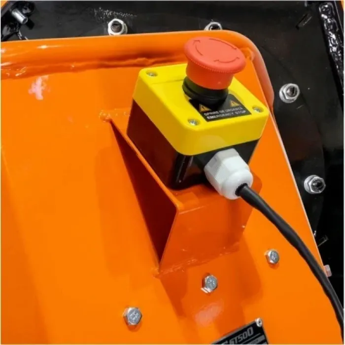 За допълнителна безопасност, RURIS ST 500 е оборудвана със сензор за нивото на маслото и леснодостъпен авариен бутон за бързо спиране, като специалната система за безопасно подаване на материал минимизира риска при работа.