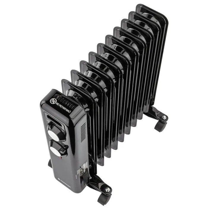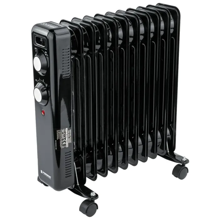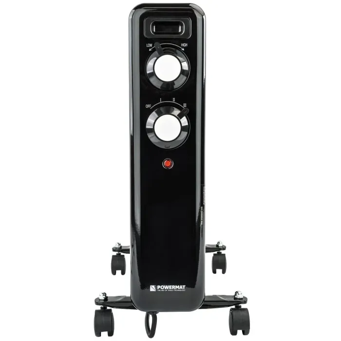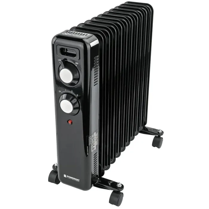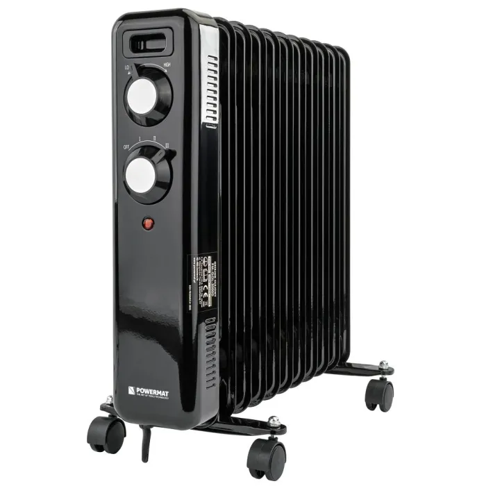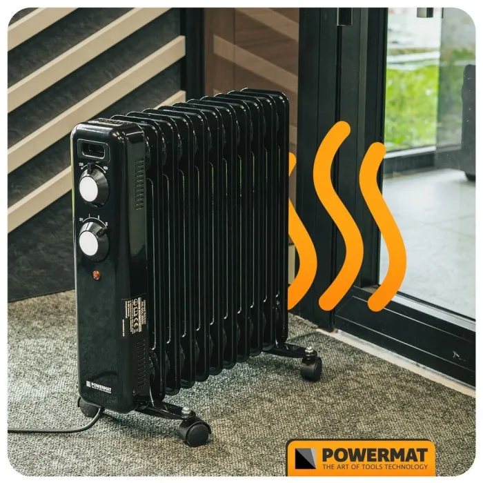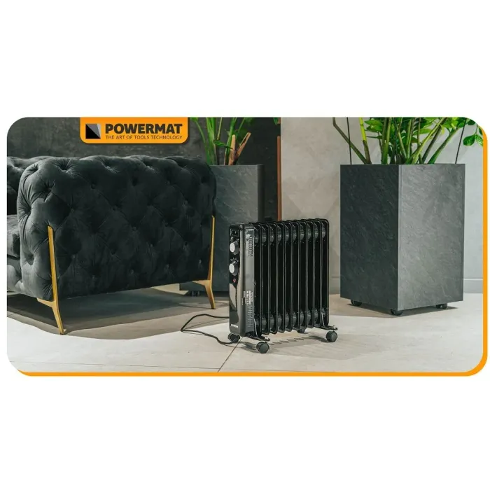 Здравата конструкция с 11 ребра гарантира бързо и равномерно разпределение на топлината в цялото помещение, осигурявайки стабилна температура и топлинен комфорт. Масленият пълнеж позволява дългосрочно задържане на топлината дори след изключване на устройството, което се изразява в икономия на енергия и оперативна ефективност. Масленият радиатор Powermat предлага три нива на мощност: 1000 W, 1500 W и 2500 W, което ви позволява да регулирате интензитета на отопление според размера на помещението и текущите нужди на потребителя.