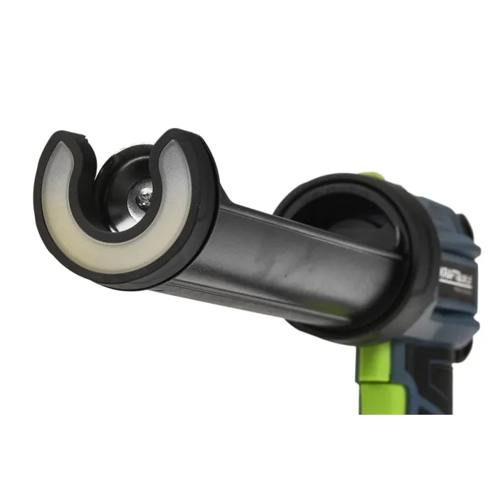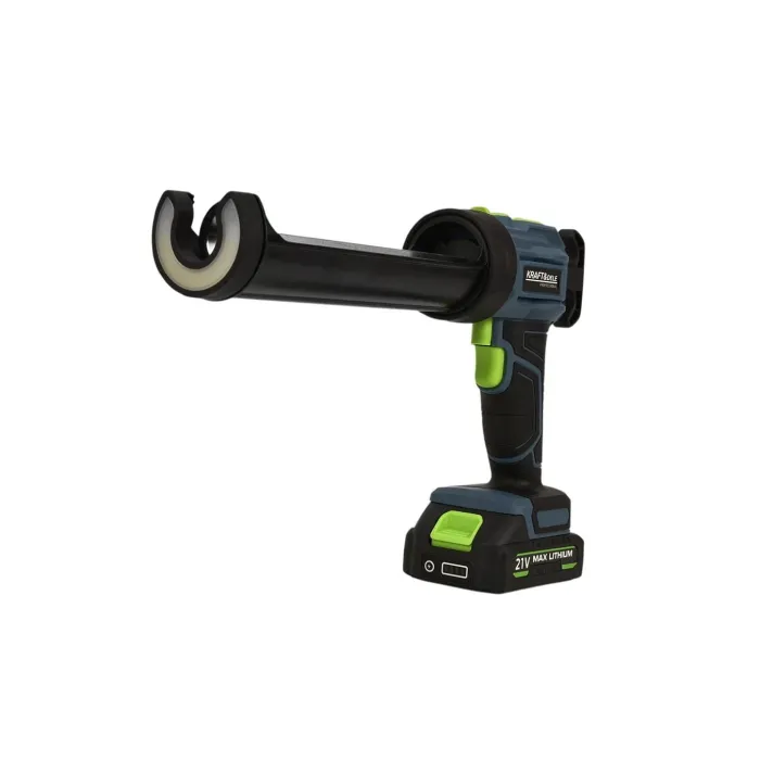 Пистолетът се захранва от 21V батерия. Здравата, изключително издръжлива конструкция на инструмента, изработена от лесни за почистване материали, е предназначена както за професионални, така и за любители потребители. Ниското му тегло и компактният му размер допринасят за по-комфортна и по-дълга работа. Специално проектираният нов механизъм на пистолета може да издържи много по-големи натоварвания и е по-лек от стандартната сокоизстисквачка. Сокоизстисквачката е оборудвана с LED диод, което значително увеличава комфорта при работа. Проектиран за всички видове уплътнители, този инструмент осигурява бързо, лесно и ефективно екструдиране. Професионален пистолет за силикон от ново поколение. Устройството се използва за уплътняване на пукнатини, запълване на фуги, нанасяне на лепило и др.