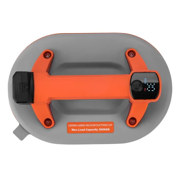 Благодарение на вградената батерия от 3000 mAh и модерното USB-C захранване, вендузата осигурява дълга работа с едно зареждане, а ергономичният ѝ дизайн повишава комфорта и безопасността на употреба при всякакви условия. Професионална вендуза, захранвана с батерии, с диаметър 240 мм и максимална товароносимост до 300 кг. Устройството е проектирано за безопасно и удобно боравене с гладки повърхности като стъкло, каменни плочи и метални листове.