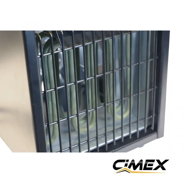Компактният електрически калорифер Cimex EL3.0C е практично и надеждно решение за отопление на гаражи, работилници, строителни обекти и други помещения. Подходящ е както за временно, така и за аварийно отопление, осигурявайки бързо и равномерно затопляне без образуване на конденз, неприятни миризми и без изразходване на кислород.