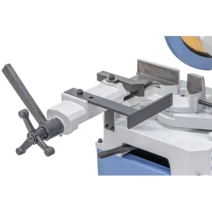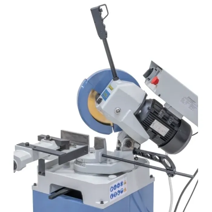 Главата на редуктора може да се завърта на 45° наляво и надясно, което позволява лесно извършване на коси срезове. Моделът е подходящ за обработка на стомана, цветни метали и пластмаси. За по-голяма безопасност, предпазният капак на диска се затваря автоматично при повдигане на рамото, в съответствие с изискванията на CE. Циркулярът за метал се отличава с богато стандартно оборудване и стабилна конструкция, осигуряваща висока точност при рязане. Благодарение на тези качества машината е незаменим помощник във всяка работилница. Машината разполага с ергономична ръкохватка с предпазен превключвател 24 V. Отрезната машина BERNARDO CS 250 L е оборудвана със закалени, полирани зъбни колела, работещи в маслена баня, а системата за охлаждане е интегрирана в рамката на машината.