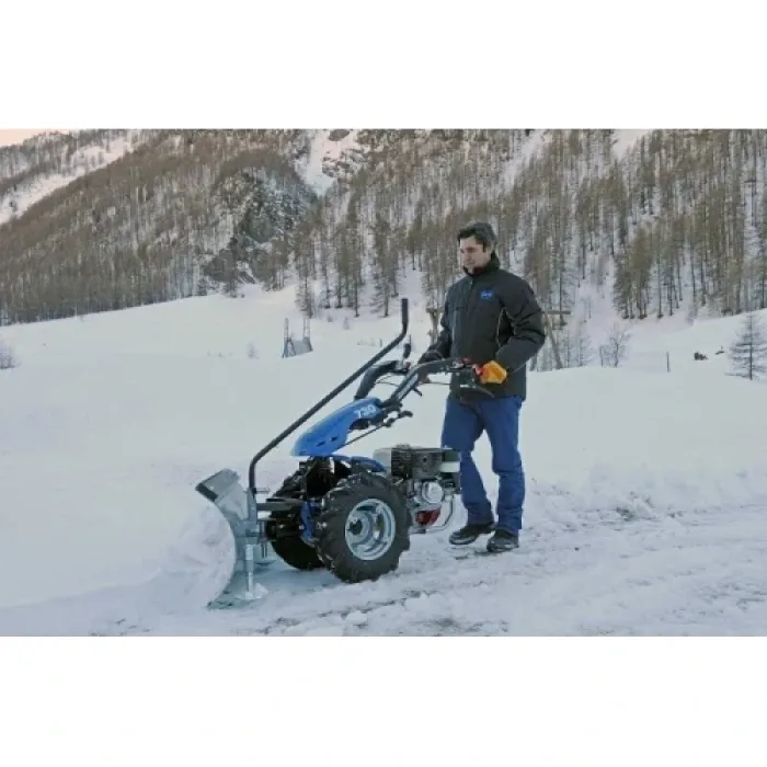 За да се предотврати повреда на настилката и загребването на чакъл, плъзгачите са регулируеми по височина. Полиуретановият ръб на греблото осигурява допълнителна защита на повърхността. За оптимален баланс при работа може да се закупи и допълнителна тежест от 9 кг. Професионалното снегопочистващо гребло BCS, изработено от здрава стомана, е с работна ширина 100 см и е проектирано за висока ефективност. Извитата му форма улеснява избутването на снега, като предотвратява залепването му, а ъгълът на греблото може да се регулира странично директно от позицията на водача.