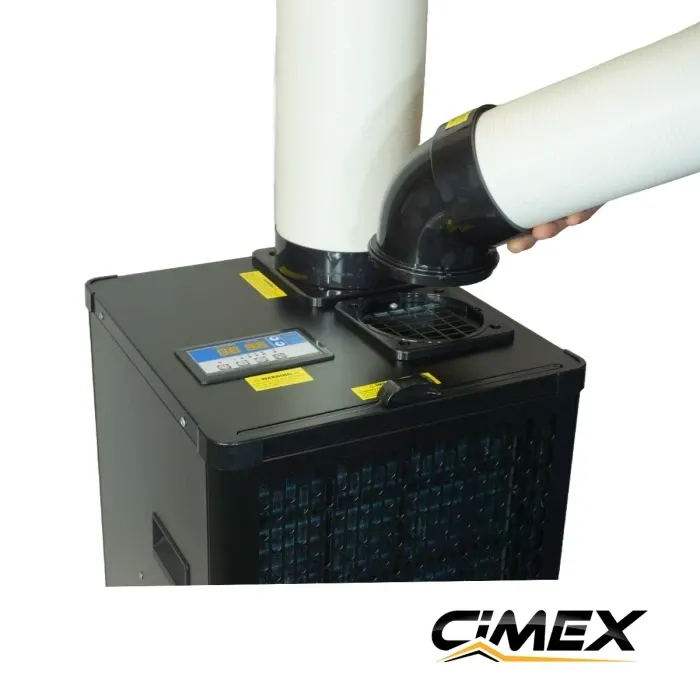 Здравата му конструкция, компактният размер и лесната мобилност правят CIMEX IAC27RS предпочитан избор за професионалисти, които търсят мощно, автономно и преносимо решение за охлаждане, без нужда от монтаж. Уредът разполага с една гъвкава тръба за студен въздух (Cold Air Outlet), разположена в горната част на корпуса, както и гофрирана тръба за отвеждане на топлия въздух, която може да се монтира през прозорец или стена. Всяка от тръбите е гофрирана и може да променя формата си, което дава възможност да насочите охлаждането точно там, където е необходимо – към работна зона, машина или отделно помещение. А при нужда могат лесно да се удължат чрез снадка с допълнителни тръби, така че студеният или топлият въздух да бъдат отвеждани на по-голямо разстояние или в други помещения.