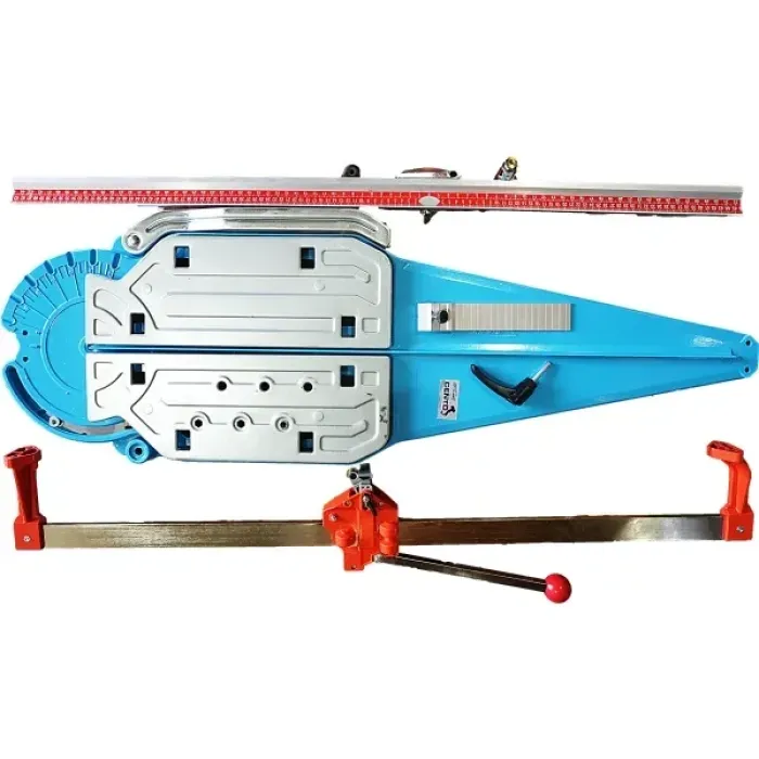 Машината е изработена от монолитна алуминиева конструкция, изключително здрава и лека. Разполага с водеща шина, за идеално прав срез на плочата. Рязането на плочки с различни дебелини се осъществява без допълнителни настройки на шината. Ръкохватката е максимално ергономична и движението й по водещата шина е посредством съчмени лагери.