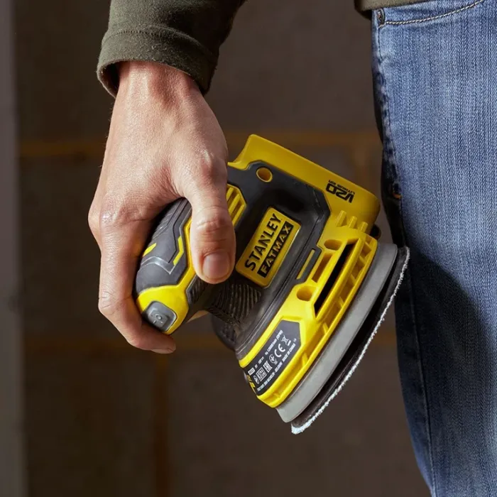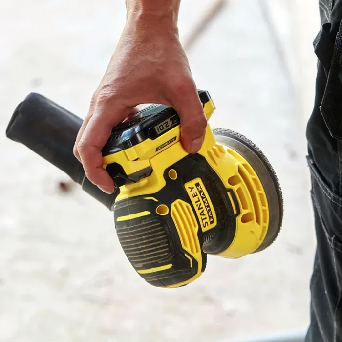 Мощният двигател се захранва от 18 V акумулатор и осигурява 12 000 оборота в минута за бързо отстраняване на материал, което прави шлифоването ефективно и лесно. Диаметърът на шлифовъчната подложка е 125 мм. Нисък профил и леко тегло допринасят за допълнителен контрол и редуциране на вибрациите по време на работа. Защитеният прекъсвач пази машината от прах и отпадъци, удължавайки по този начин живота ѝ. Шлайфът има високоефективна система за събиране на прах с вградена торба, като може да бъде свързан и към вакуумен маркуч за безпроблемно отвеждане на праховите частици. Акумулаторният орбитален шалйф е част от обновената платформа FatMax V20 и се отличава с нова и усъвършенствана батерийна система, която елиминира т.нар. памет ефект и минимизира самостоятелното разреждане. Този шлифовъчен уред е идеално средство за премахване на замърсявания, боя или корозия, както и за подготовка на различни повърхности.