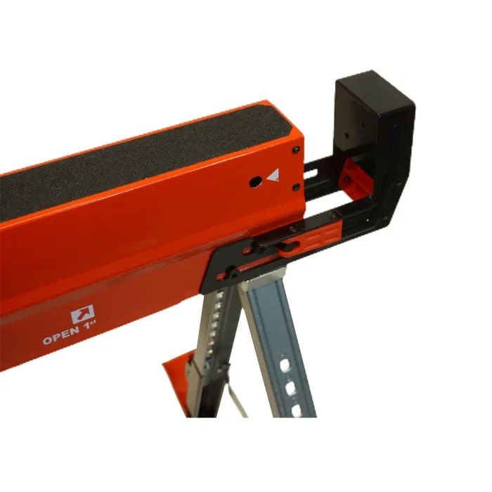 Една от ключовите ѝ особености са регулируемите странични рамена, които могат да се разтварят плавно до 90 мм, за да поберат дървени греди или плоскости. При използване на две стойки това позволява изграждане на цял работен плот – изключително удобство за дърводелски, монтажни, строителни и ремонтни дейности.