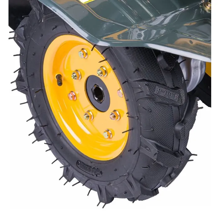 Благодарение на използването на двигател с вътрешно горене с мощност 7 к.с., няма да останем без мощност дори при трудни условия, а включените пътни колела и направляващо колело правят маневрирането на устройството лесно и не изисква много сила от потребителя.