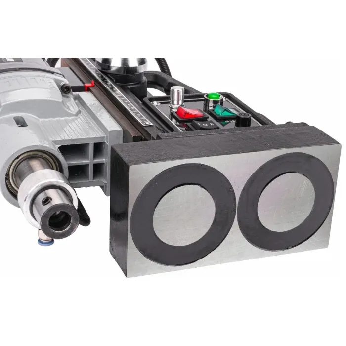 Прахоустойчивите отвори за вход и изход на въздух са проектирани за ефективно охлаждане на магнитната бормашина при прегряване и повишават безопасността. Мощният магнит може да генерира сила на задържане от 14000N / 3147 lbs , като гарантира, че бормашината няма да се движи по време на работа. Нашата магнитна бормашина се закрепва здраво по време на работа благодарение на електромагнитната основа.