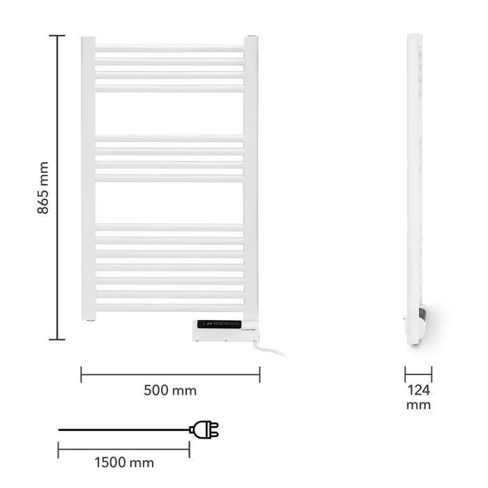 Ако цените щедрата топлинна мощност, интелигентното управление и модерния дизайн във вашата баня, радиаторът за кърпи TWH 500 S е правилният избор. Този електрически радиатор за кърпи от Trotec е идеален за по-големи бани или помещения с по-високи изисквания за топлина, съчетавайки мощна отоплителна технология с удобно управление.