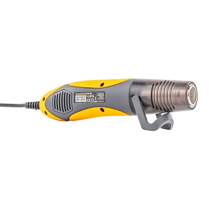 Пистолетът за горещ въздух тежи само 0,4 кг, което в комбинация с ергономичната дръжка гарантира комфорт на работа и прецизно маневриране дори след продължителна употреба.