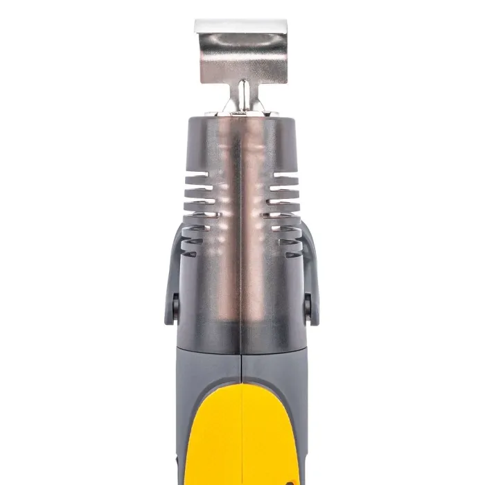 Профилираната изходна дюза концентрира потока горещ въздух върху малка площ, което позволява точково нагряване на стикери, ъгли и профили, без да се засягат съседни зони.