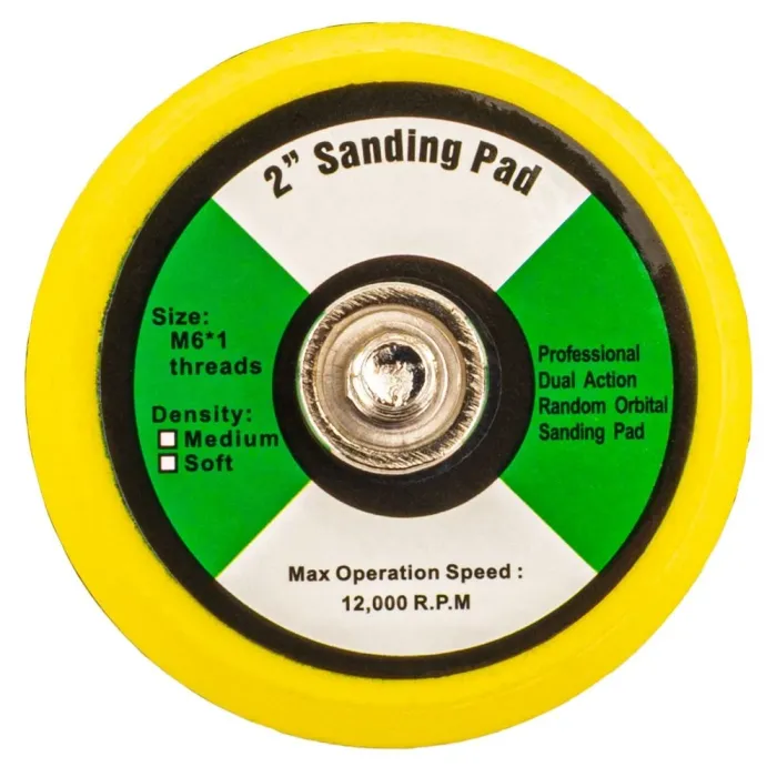 Шлайфмашината е оборудвана с две сменяеми шлифовъчни подложки с диаметри 3 инча (75 мм) и 2 инча (50 мм) , което позволява прецизно настройване на инструмента към вида и размера на повърхността.