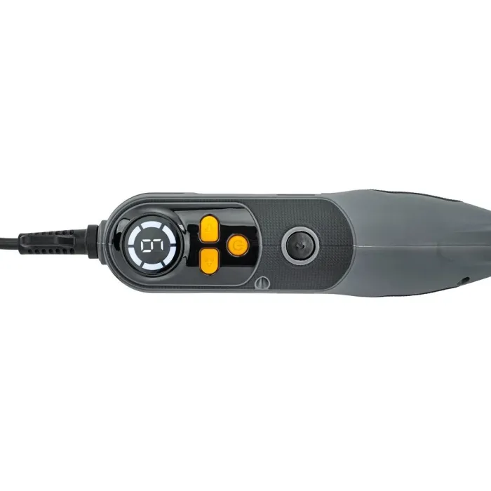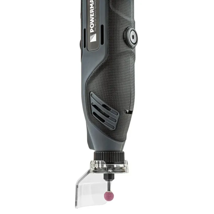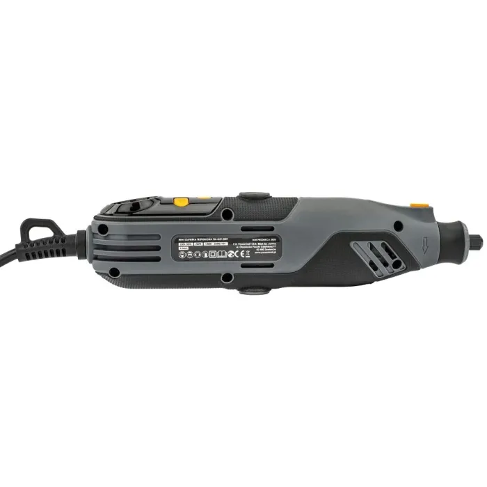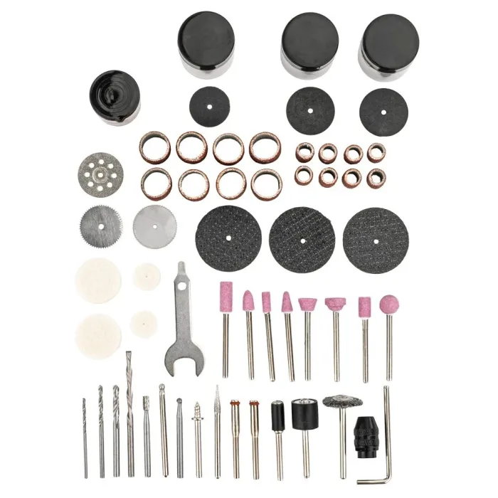 Ясният LCD дисплей показва режима на работа и текущата скорост на въртене, което позволява пълен контрол върху процеса на обработка. Корпусът, изработен от издръжлива пластмаса, е лек и лесен за употреба , осигурявайки комфорт дори при продължителна работа. Комплектът включва над 180 аксесоара , включително фрези, бормашини, четки, дискове и шкурка, разширяващи възможностите на устройството. Мини шлайфмашината е оборудвана с мощен 200 W мотор , който осигурява ефективно рязане, шлайфане, пробиване и полиране на различни материали. Регулирането на скоростта в диапазона от 8000–35 000 об/мин ви позволява да регулирате параметрите според вида на извършваната работа.