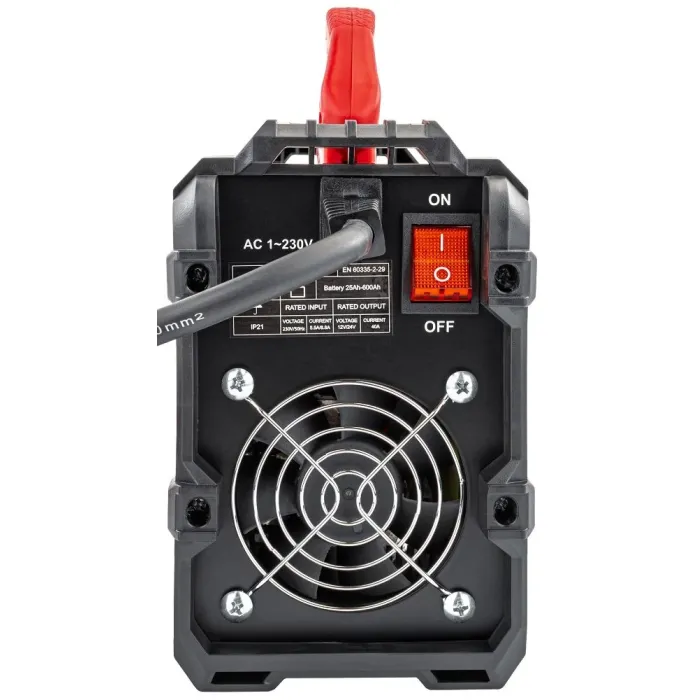 Режимът за стартиране с ток осигурява до 400A в точния момент, в който завъртите ключа, като ефективно стартира автомобила дори при дълбоко разредена батерия. Инверторният токоизправител 12/24V с автоматично регулиране на тока и напрежението адаптира зареждането към състоянието на батерията, поддържайки стабилна мощност и удължавайки живота ѝ. Високата мощност от 4,85 kW и IGBT транзисторите осигуряват ефективно превключване, компактни размери и ниско тегло, като същевременно се запазва производителността.