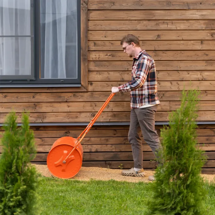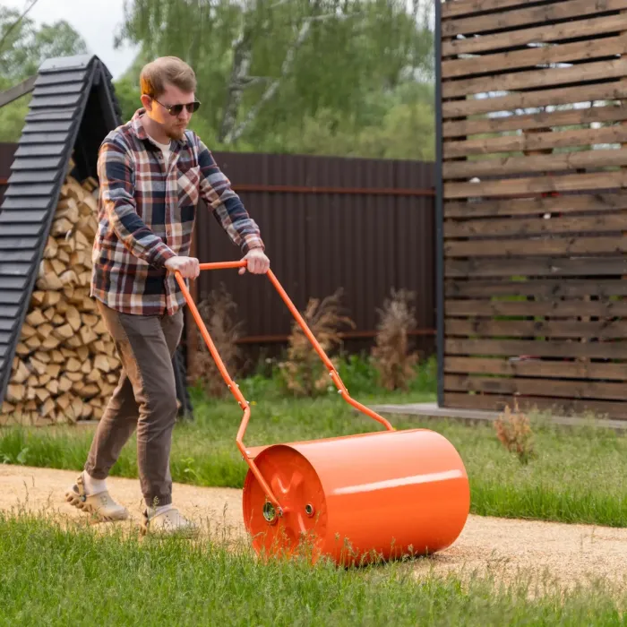 Цилиндърът може да се напълни с вода или пясък през специален отвор, което позволява увеличаване на масата му за по-ефективно уплътняване на почвата. Ръчния градински валяк е с вместимост 70 л. Саморазливният валяк е оборудван с тапа-болт, което го прави удобен за работа. Подходящ е за валиране на тревни площи, пресоване на слой пясък или асфалт, създаване на пътеки в градината и др. Благодарение на сгъваемия си дизайн, валякът е удобен за транспортиране и съхранение. Изработен е от високоустойчива стомана, а повърхността му е боядисана с прахов емайл, което го предпазва от корозия и механични натоварвания.