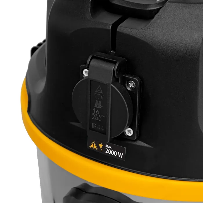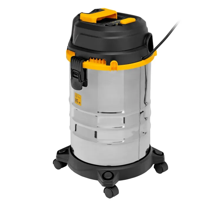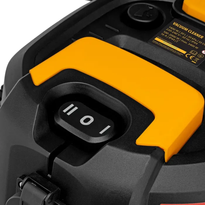 Оборудвана е с 3 м маркуч, който осигурява по-голям обхват на действие. Компактен и стабилен дизайн, лесна за транспортиране и използване на различни места. Прахосмукачката за сухо и мокро почистване е с мощност 1400 W и вместимост на контейнера 30 л. Строителната прахосмукачка е мощен и надежден инструмент за почистване на строителни обекти, работилници и гаражи. Прахосмукачката е оборудвана с вградена електрическа розетка с функция за автоматично синхронизиране, което я прави идеална за работа с електроинструменти, като осигурява автоматично включване при стартиране на свързания инструмент.